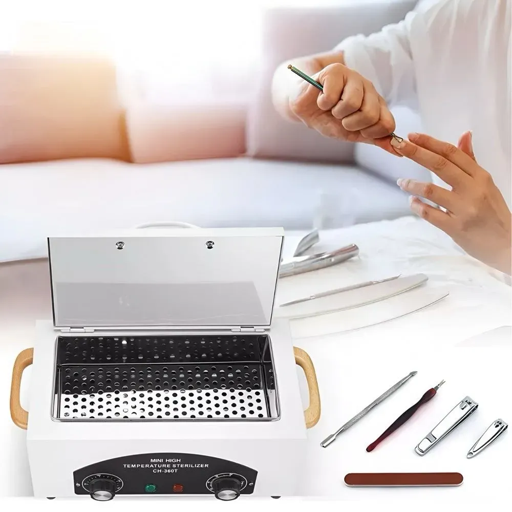 Esterilizador perfecto para salones de belleza, salones de uñas, pedicuras, barberías, clínicas dentales o uso doméstico. El esterilizador también se puede utilizar para limas cosméticas y pinzas dentales, para desinfectar herramientas de metal.