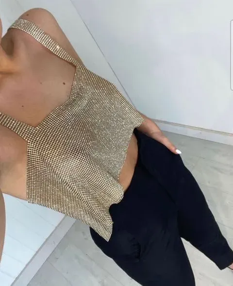 El TOP STRASS RECTO es una prenda elegante y sofisticada que realzará tu estilo. Con detalles de strass que le dan un toque de brillo y glamour, este top es perfecto para ocasiones especiales o para darle un toque chic!!